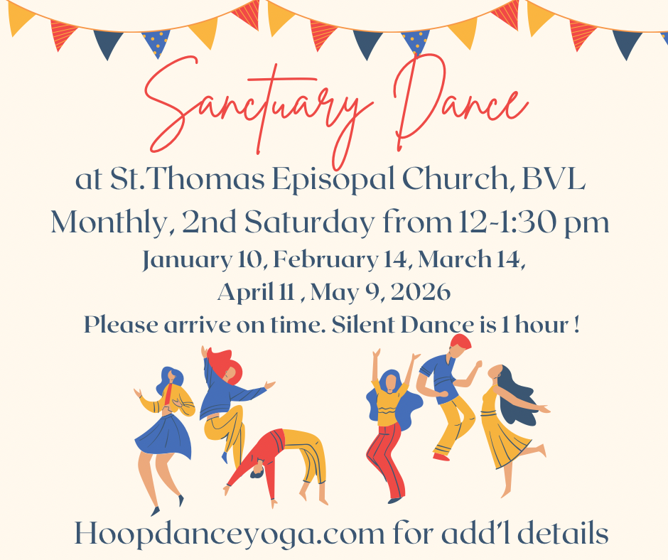 Sanctuary Dance is held every 2nd Saturday of the month from 12:00 PM to 1:30 PM. Come experience the joy of movement, connection, and community with HoopDanceYoga with Lori. We meet you where you are at!
